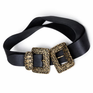 Double leather belt Handmade leather belt with metal carved buckle Can be worn normally high-waisted or low-waisted Color: black Brand: Individual